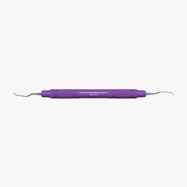 Gracey Access curette, slightly angled for all anterior and canine surfaces. Access instruments have a 3 mm longer 1st shank and a 50% shorter working end. 10% thinner than the standard version. Ideal for curettage in deep and narrow pockets.