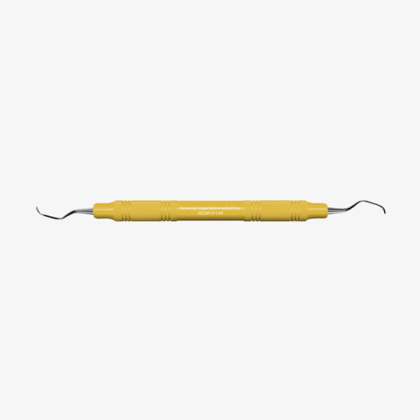 Universal curette with two cutting edges. Strongly angled for posterior surfaces.