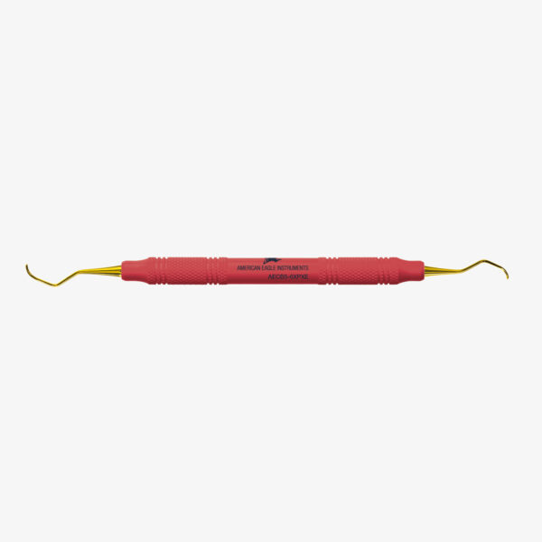 Universal curette with two cutting edges. One instrument for all tooth surfaces. Alternative to the universal curette M23A with an even thinner blade. Ideal supplement to Universal Scaler M23 from American Eagle. Ergonomic, lightweight plastic handle. Durable and recyclable using conventional methods.