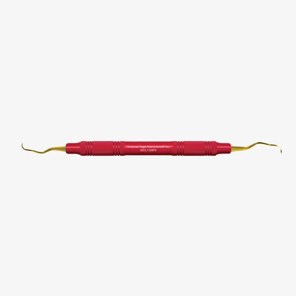 Universalkürette mit zwei Schneidekanten. Spezielle Winkelung für den Unterkiefer Seitenzahnbereich.