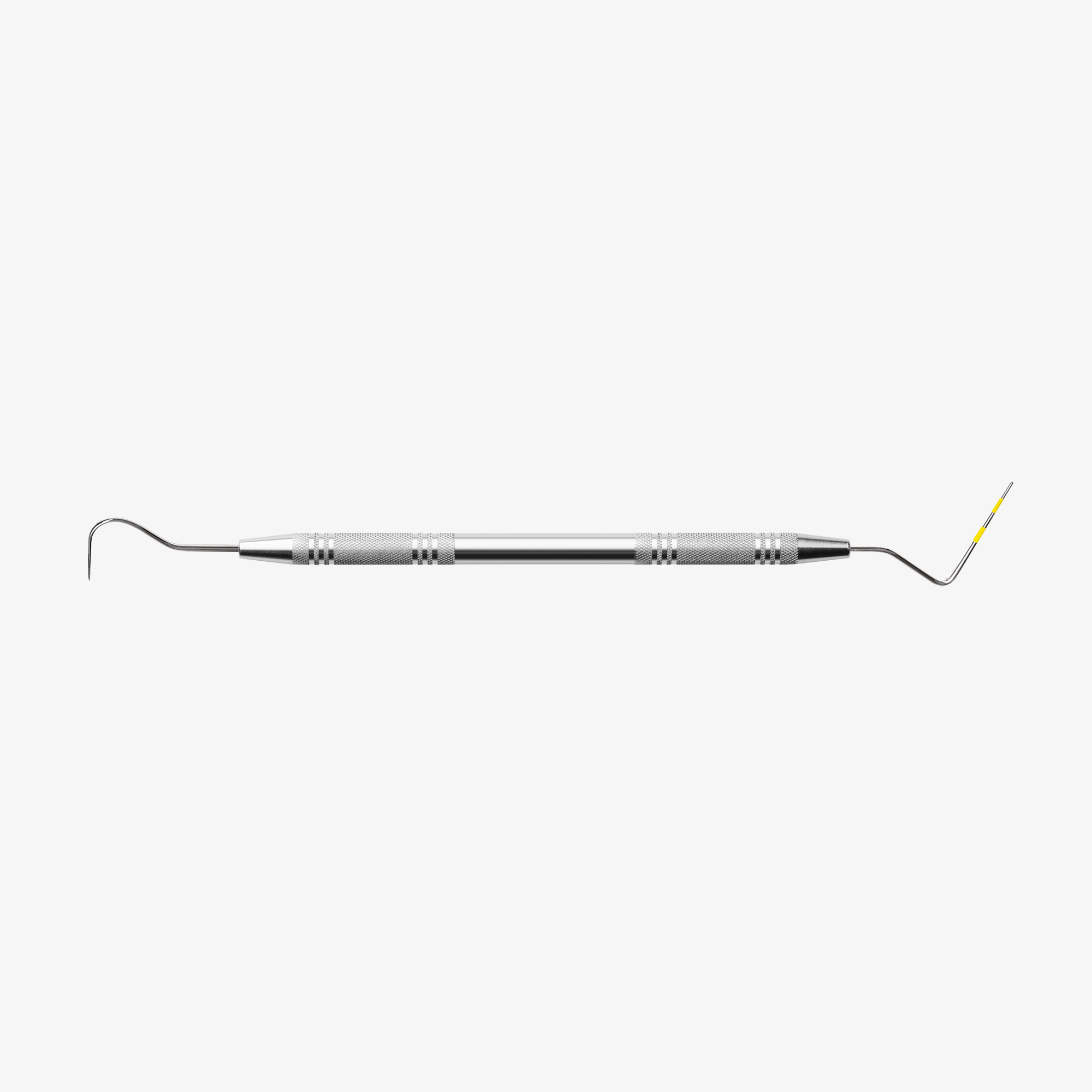 Perio probe/tactile probe combination, double-ended, crown remover probe and perio probe with a 3-6-9-12 mm scale, easy diagnostics and reliable findings with only one instrument, yellow marking for optimal visibility