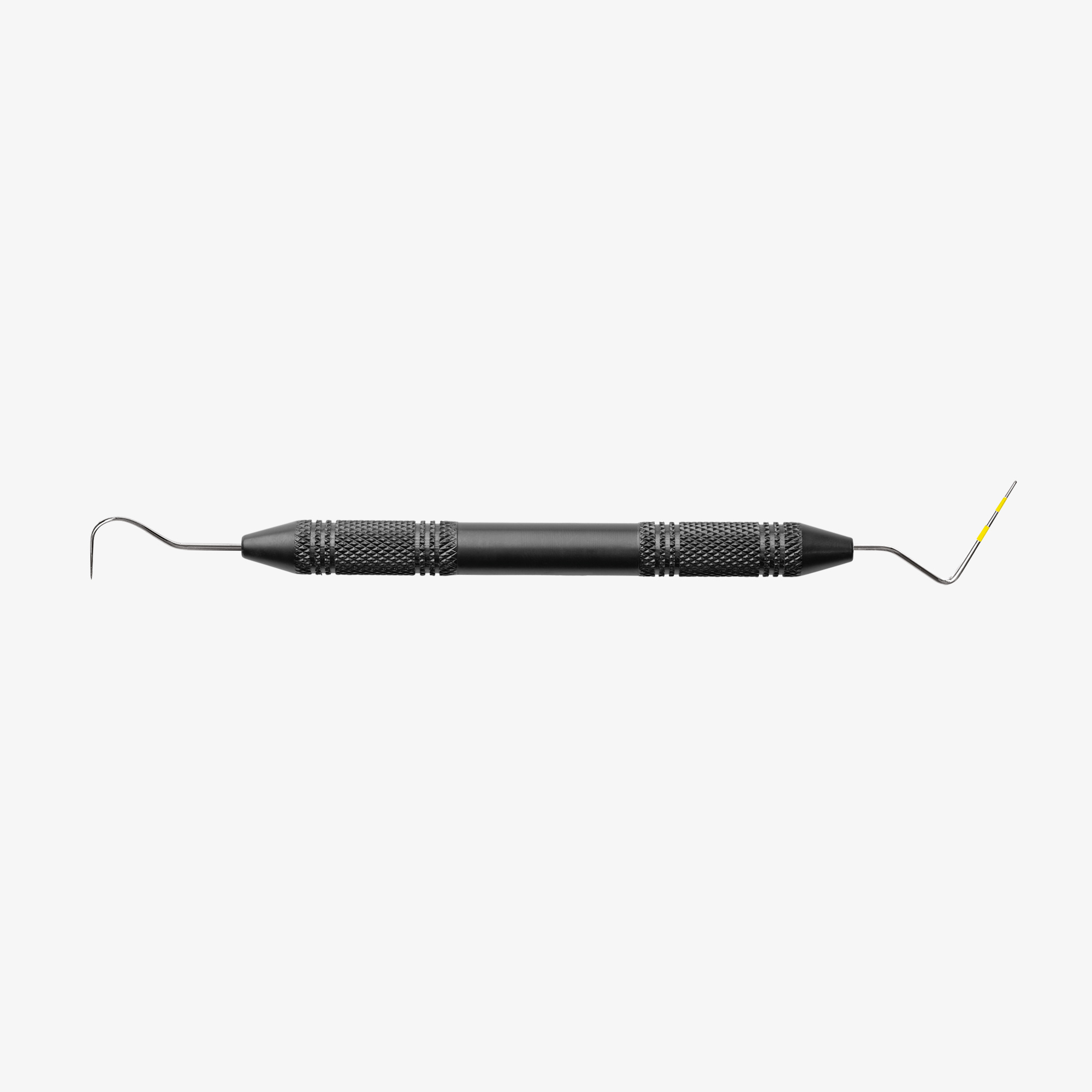 Perio probe/tactile probe combination, double-ended, crown remover probe and perio probe with a 3-6-9-12 mm scale, easy diagnostics and reliable findings with only one instrument, yellow marking for optimal visibility