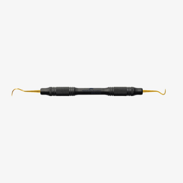 Molar scaler, strongly curved and extended working end for improved access to interdental spaces. Very fine, delicate working ends allow scaling even in extremely crowded cases. Ergonomic, lightweight plastic handle. Durable and recyclable using conventional methods.