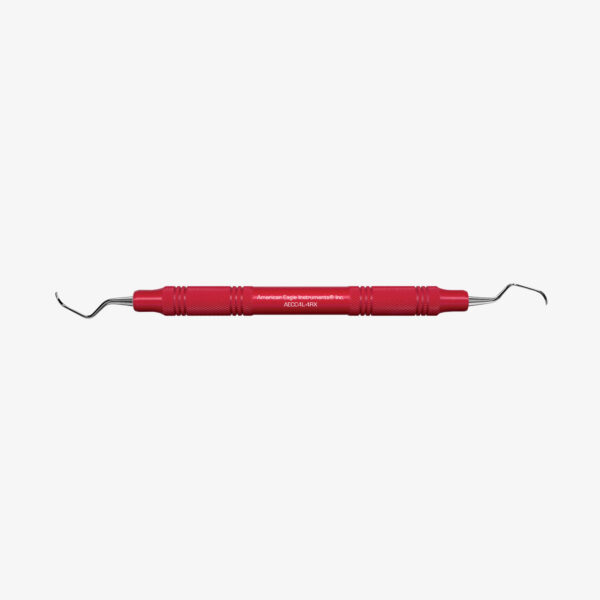 Universal curette with two cutting edges. Extended 1st shank and strongly angled for optimal access in the posterior region.