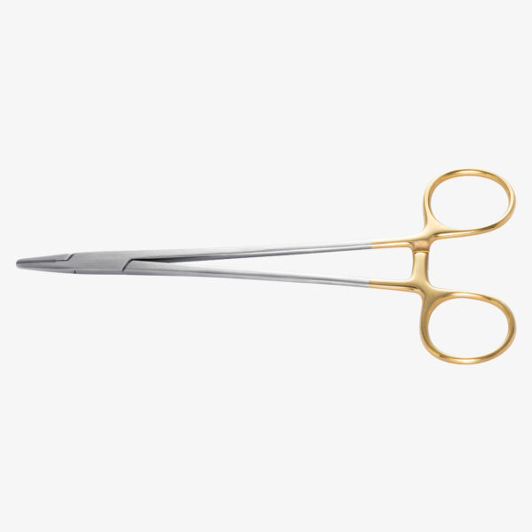 Geeignet für 3/0-4/0-Nadelstärken. Die Länge des Instruments gewährleistet den Zugang auch im hinteren Mundbereich, TC-Hartmetalleinsätze garantieren einen sicheren Grip und minimale Abnutzung. Keine scharfen Kanten, insbesondere am Scharnier und an den Hartmetalleinsätzen – kein versehentliches Abtrennen des Nahtmaterials möglich. Besonders lange Variante mit 18 cm.