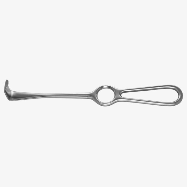 Der Langenbeck-Wangenhalter/Abhalter/Wundhaken 1 wird zum Abhalten von Mukoperiostlappen, der Wangen, der Lippen oder der Zunge verwendet.