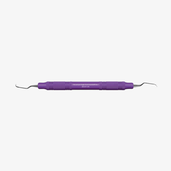 Universalkürette mit zwei Schneidekanten. Besonders dünne Klinge für alle Front- und Eckzahnflächen.