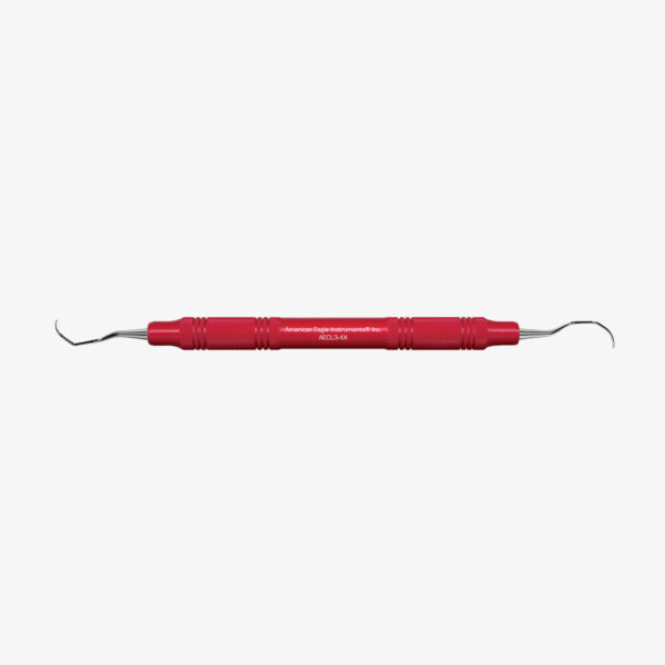 Universalkürette mit zwei Schneidekanten. Spezielle Winkelung für den Oberkiefer Seitenzahnbereich.