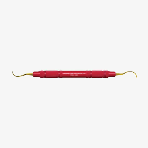 Universalkürette mit zwei Schneidekanten. Spezielle Winkelung für den Oberkiefer Seitenzahnbereich.
